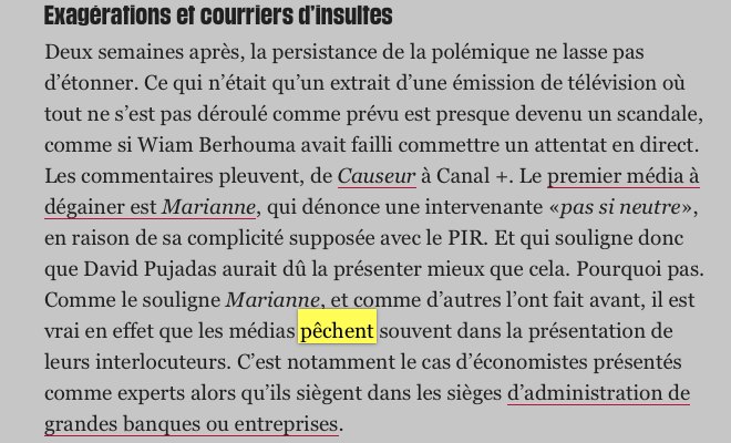 D’après Libé, Wiam Berhouma est d’autant plus innocente que si elle a participé à la « Marche pour la dignité » aux côtés des Indigènes de la République à l’automne dernier, elle n’émargerait aucunement au PIR, ce parti « régulièrement accusé par ses détracteurs d’être antisémite ». Sa présidente Houria Bouteldja fustigeant régulièrement « le philosémitisme d’Etat », on se demande bien pourquoi ledit mouvement « anticolonialiste » s’est attiré une telle réputation. Et puis peu importe que David Pujadas l’ait présentée comme une citoyenne apolitique, comme l’écrivent les journalistes de Libé en taquinant le goujon, « les médias pêchent souvent dans la présentation de leurs interlocuteurs » (sic).