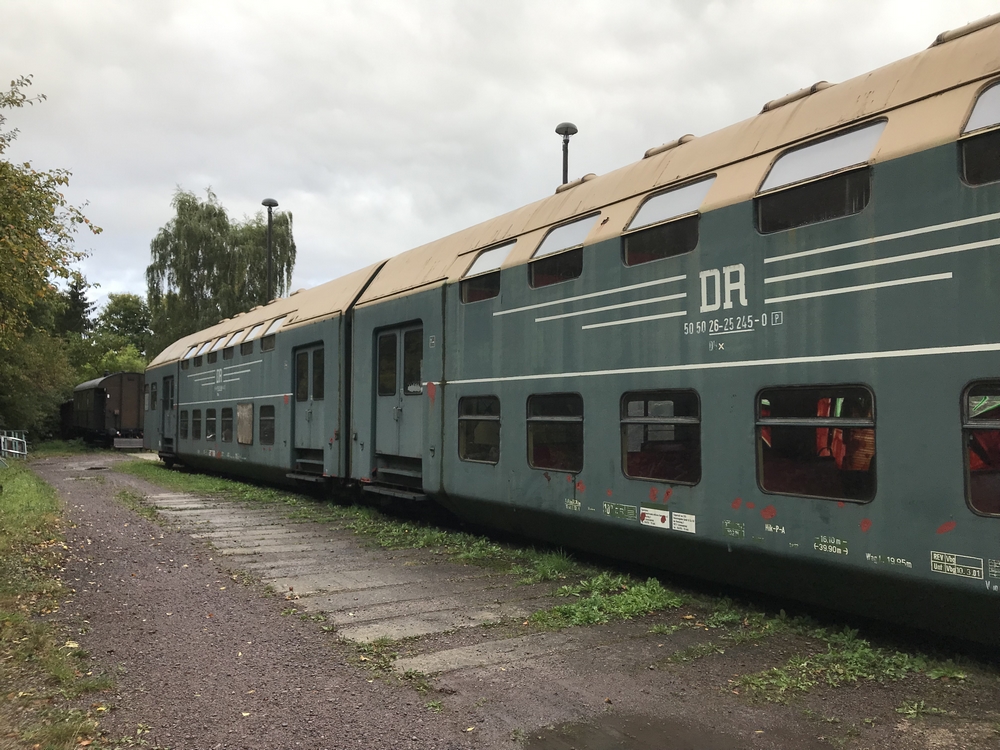 Depuis Erfurt, la ligne de chemin de fer qui y mène est toujours à voie unique et toujours pas électrifiée. Les paysages sont beaux : champs labourés avant l’hiver, villages tuilés de rouge, douces parties forestières. Le matériel neuf de la Deutsche Bahn a remplacé les vieux wagons floqués du sigle « DR », pour Deutsche Reichsbahn, la compagnie est-allemande créée en 1949 – qui porte le même nom que celle de la République de Weimar puis du Troisième Reich.
