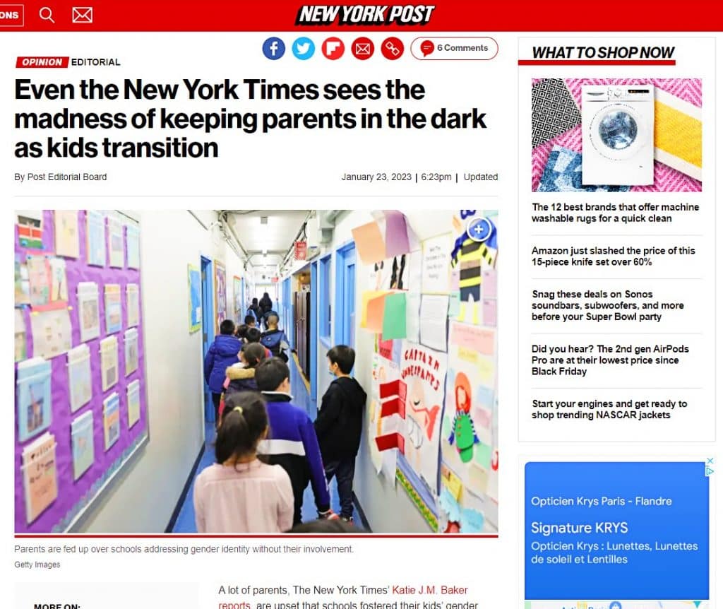 [2] Rédaction, « Even the New York Times sees the madness of keeping parents in the dark as kids transition », New York Post, 23 janvier 2023.