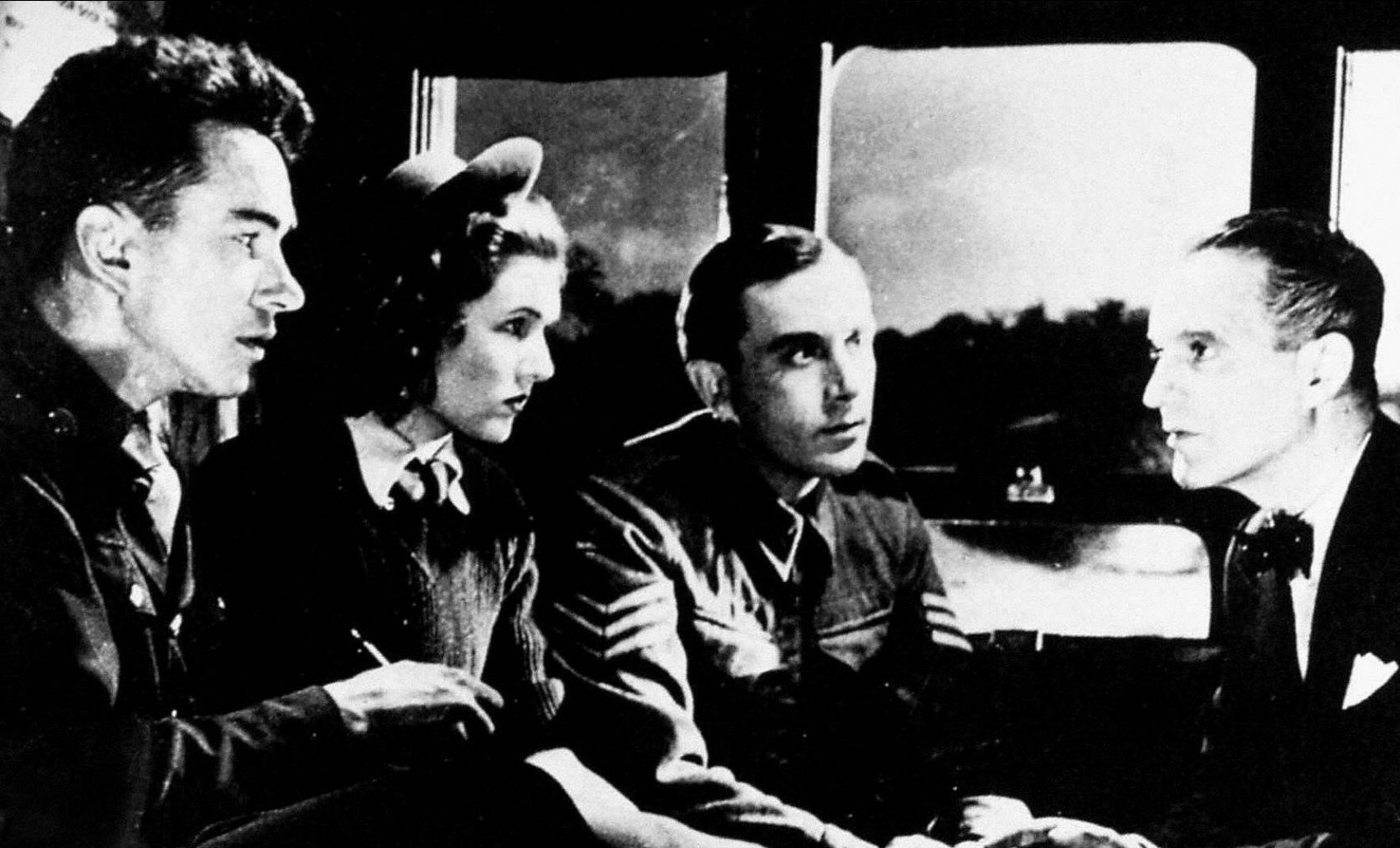En ce cas, nous serions mieux avisés de parler d’alternance entre ombre et lumière, plutôt que d’opposition. La première séquence de nuit, presque intégralement dans l’obscurité, est parfois striée par les rayons de lampes-torches dont on dissuade pourtant, blitz oblige, les soldats de se servir. Plus loin, une conférence est rythmée par la panne d’un projecteur, culminant au moment où l’appareil est réparé sous des applaudissements. Et hormis les plans de l’intérieur de la Cathédrale recréée en studio – (Powell interdit de tournage n’y vola qu’une vue de la nef), le jeu d’éclairage le plus marquant est celui qui transforme, à la faveur d’un store de wagon déroulé, un simple soldat en archange conquérant. Cette reconnaissance de la nuit comme du jour va avec le motif le plus insistant de A Canterbury tale : celui de la désorientation spatiale et temporelle. Les personnages passent leur temps à se perdre et à chercher leur route qui se confond pour une part très courte avec le Chemin des pèlerins médiévaux.