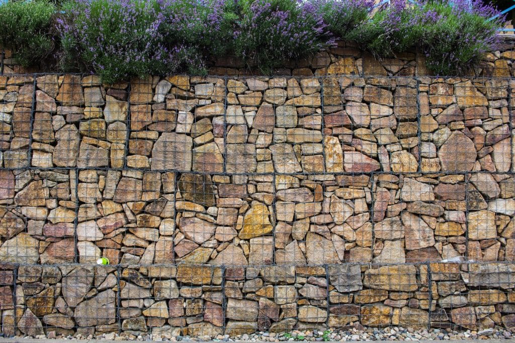 Gabion : Cette trouvaille de l’industrie du bâtiment est déjà partout. Il s’agit de cages de fer (ou de ferrailles grillagées) ceinturant un tas de pierres non montées. Elles servent de mur ou de butoir, de pare-attentat ou de bloc anti-voiture, parfois de mur d’enceinte. Elles ont la forme de cubes ou de murets plus ou moins longs. Degré zéro de la construction, le gabion permet de se passer de l’humain et du travail lent, soigné et ingénieux du maçon. Pour les collectivités locales, c’est le top du top : rapidité, coût marginal et modèle unique !