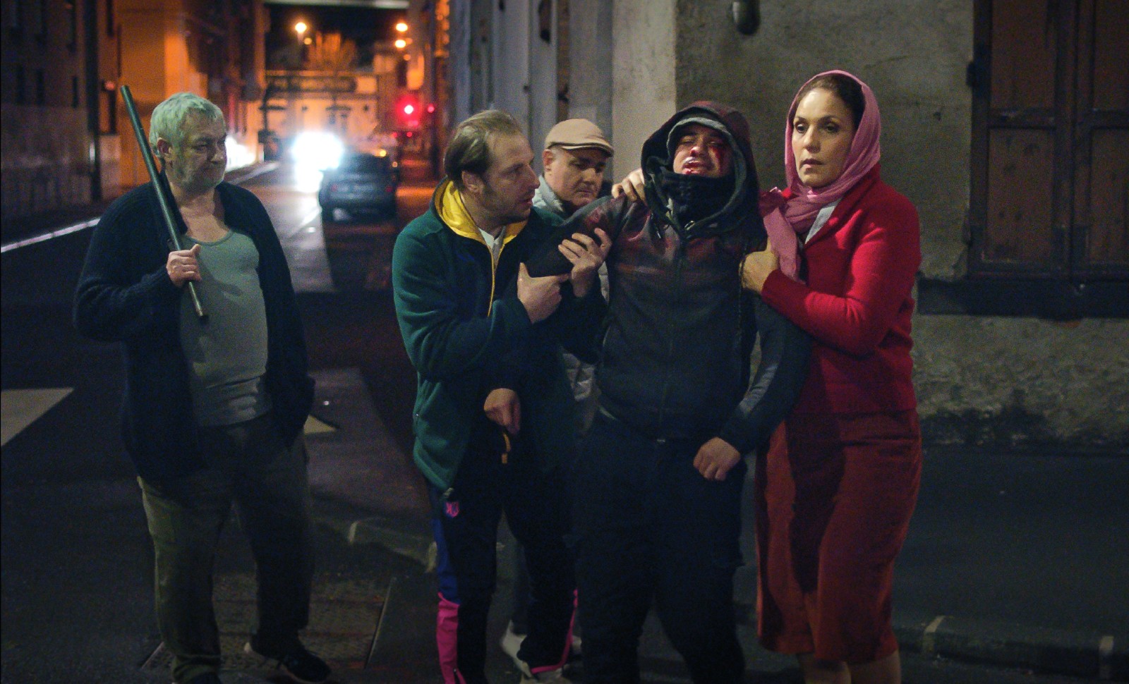 Car, en fait d’œcuménisme sociétal, de paix civile et de vivre-ensemble, le film, en cela plus iconoclaste qu’il ne s’en donne l’air sous ses dehors de comédie de boulevard farfelue, dresse un état des lieux acide de la France urbaine profonde : quartiers hantés par l’insécurité, rue investie par une tribu d’adolescents maghrébins encapuchonnés et à la mine patibulaire, voisins de paliers tétanisés par la peur…