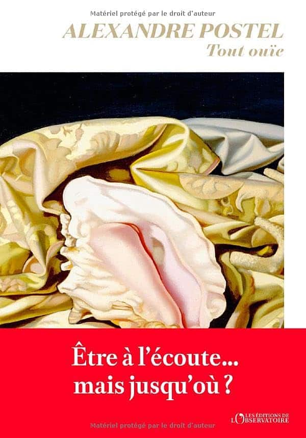 Violette Letendre, éditrice en déclin dans une maison d’édition en déclin, est approchée par Monegal, le mari d’une de ses proches. Elle le connaît comme nous connaissons souvent ces gens qui partagent la vie de nos amis, par quelques malentendus et sans sympathie particulière. Monegal lui propose de lui envoyer un chapitre par semaine d’un roman en cours d’écriture, intitulé La Confession auriculaire, initiative que Violette Letendre accepte avec réticence. Ce roman dans le roman a pour protagoniste Victor Chantelouve. Le paradoxe réside dans le fait que ce héros représente le seul personnage véritablement romanesque du livre d’Alexandre Postel. Le seul, du moins, que le lecteur de Tout ouïe apprendra à connaître, puisqu’on le suit de l’enfance à l’âge adulte. Il se caractérise par un trait intérieur bien particulier : son obsession pour les expressions sonores de la jouissance féminine.