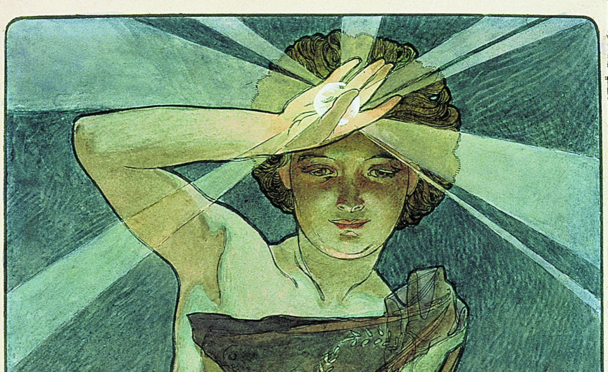 « Choisissez une autre profession où vous serez plus utile ! » tel est le commentaire qui accompagne le rejet de la candidature du jeune Alphonse Mucha à l’École des Beaux-Arts de Prague, en 1878. Il a 18 ans. Il est originaire de Moravie et a grandi dans un milieu populaire. Son approche est, semble-t-il, un peu simple. Il n’a pas compris ce qu’attend cette respectable institution. Ça n’empêche pas le jeune homme d’arpenter les rues de Prague et de s’attarder dans ses riches églises. Les décors de la Contre-réforme le font rêver, notamment ceux de la somptueuse Saint-Ignace. Le jeune Mucha tombe dans le baroque comme Obélix dans la potion magique. C’est ainsi que naît son attrait pour le faste visuel. Il prend goût à la plus grande fantaisie. Il emmagasine des images de corps à moitié nus, de drapés lyriques et de chevelures emportées par des souffles.