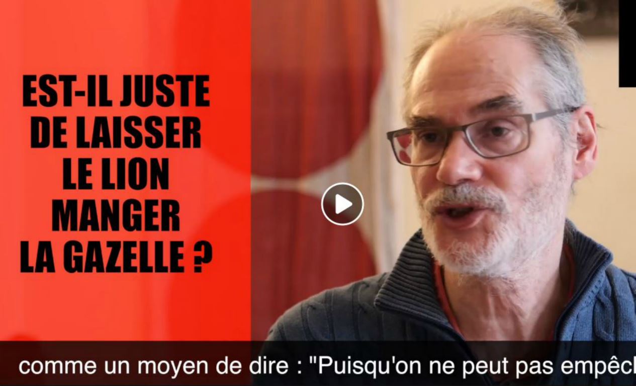 « Si la souffrance de la gazelle importe, il y a un problème de solidarité avec la gazelle. Le lion va, au cours de sa vie, tuer des centaines de gazelles. Est-ce qu’il est juste de laisser le lion faire cela ? Soulever ce problème et répondre que : ‘Oui, on devrait dans l’idéal changer la nature (…) dans la mesure du possible’, c’est la seule réponse qui soit crédible et qui permette de montrer que nous prenons réellement au sérieux la question de la souffrance des animaux. » Ces propos sont de David Olivier, coauteur de La révolution antispéciste et cofondateur des Cahiers antispécistes. Dans la même vidéo, circulant sur les réseaux sociaux, il explique que l’on doit garder les chats à l’intérieur pour les empêcher de chasser, estimant qu’il faut mettre en balance les désirs du chat, et ceux des souris qui « ont une fin atroce entre les griffes du chat ».