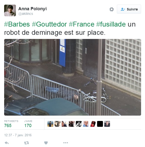 Cet homme, muni d’un hachoir de boucher, s’est présenté à 11H30 devant le commissariat de la rue de la Goutte-d’Or, quartier populaire et multiethnique du nord de Paris, a exhibé son arme et crié « Allah Akbar » (Dieu est le plus grand, en arabe, NDLR) avant d’être abattu par des tirs de riposte des policiers.