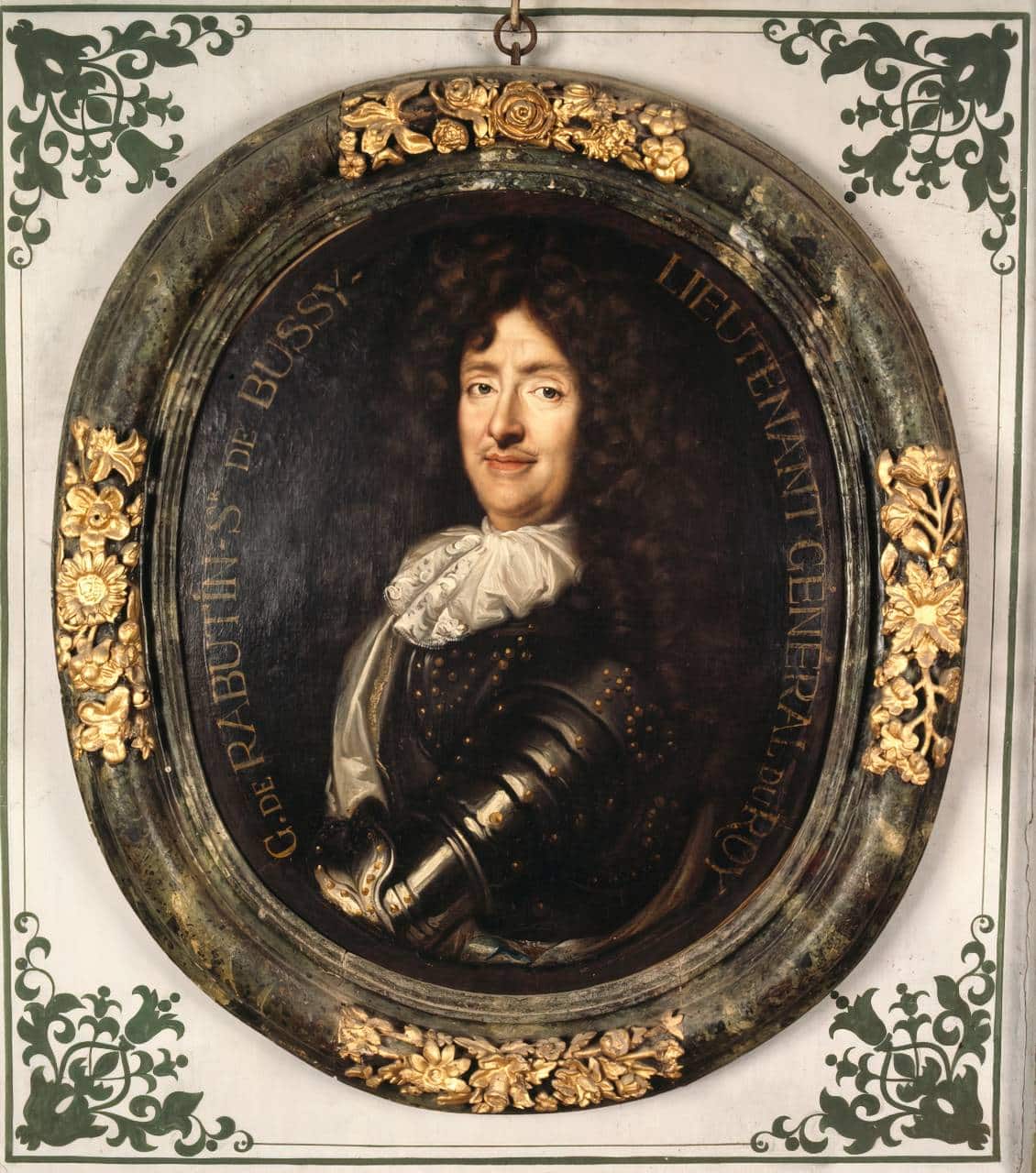 1665 : Bussy-Rabutin est élu à l’Académie française (fauteuil n° 20, occupé par Thierry Maulnier, José Cabanis et, aujourd’hui, Angelo Rinaldi). La marquise de la Baume dérobe le manuscrit de L’Histoire amoureuse et le fait éditer. Le livre circule. Le roi, furieux, envoie l’auteur à la Bastille, puis l’expédie dans ses terres bourguignonnes avec interdiction de se présenter à Versailles : dix-sept ans d’exil ! Pour vaincre l’ennui, il conçoit et fait réaliser la superbe décoration de son château qui est parvenue jusqu’à nous. Il meurt en 1693.