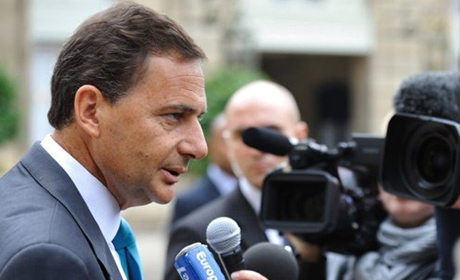 Eric Besson réfléchit, puis se penche vers le policier et parle à voix basse.