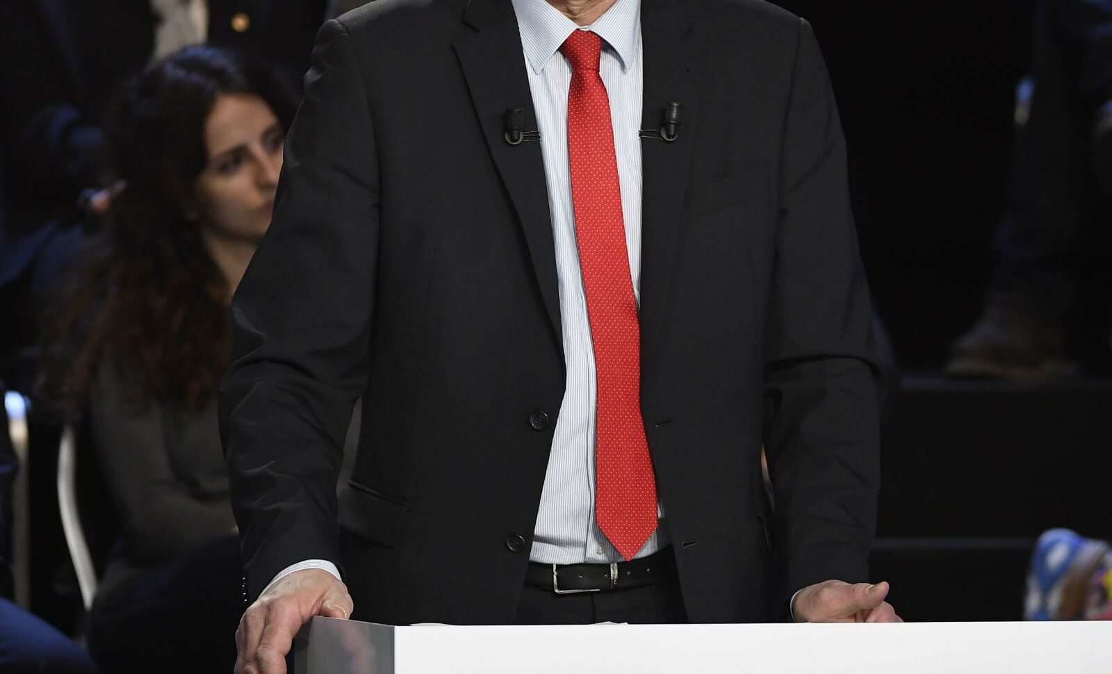 Tenue assez similaire de celle de Benoît Hamon… qui avait, lui aussi, opté pour un costume très formel et une cravate bleue marine. On regrettera toutefois que le combat cravate rouge, apanage de la gauche, contre cravate bleue, préférence plutôt droitière, n’ait pas eu lieu.