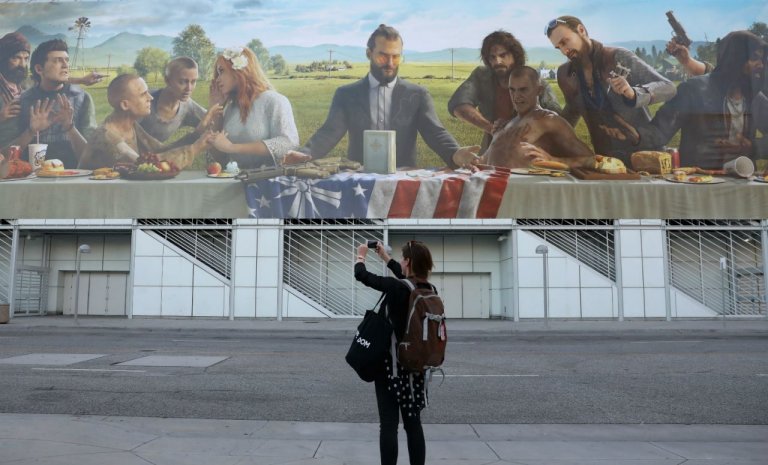 Ce besoin d’épancher des élans fanatiques, exprimé par les producteurs américains, n’est pas confiné aux séries et touche aussi le monde du jeu-vidéo. Certains amateurs de jeux de tir à la première personne (FPS, first person shooter) ont été surpris en découvrant le nouvel opus de la licence Far Cry, cette année. Après le monde préhistorique de la série dérivée (spin-off) Far Cry Primal, place à l’époque contemporaine dans Far cry 5, où l’ennemi est, là encore, un groupe de fanatiques chrétiens. La publication du poster officiel du jeu (key art) a donné le ton : il s’agit d’une reconstitution de la Cène avec le protagoniste Joseph Seed à la place de Jésus, semblant inviter à la prière avec une bible ouverte sur un drapeau américain revisité par les fondamentalistes, au milieu de barbus blancs armés jusqu’aux dents.