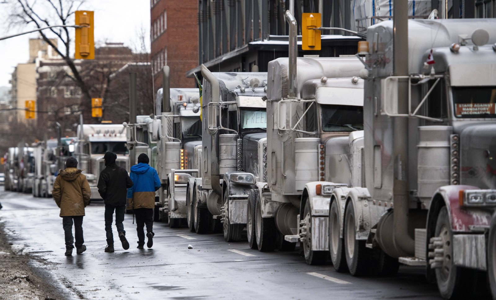 Les premiers énormes poids lourds, assez souvent ornés du drapeau à la feuille d’érable, sont entrés à Ottawa le 28 janvier rejoints par les autres le lendemain, pour notamment protester devant la colline du Parlement. Certains avaient pris la route dès le 22. De manière générale, l’accent médiatique a été mis sur des éléments extrémistes censés discréditer le mouvement, tels que des manifestants affichant un drapeau nazi, les couleurs confédérées, ou insistant pour être nourris par des distributeurs de soupe, faute de pouvoir entrer dans les restaurants sans passeport vaccinal. Cependant, les camionneurs avaient préparé des provisions et ont mis en place un service d’ordre pour repérer les quelques fauteurs de troubles.