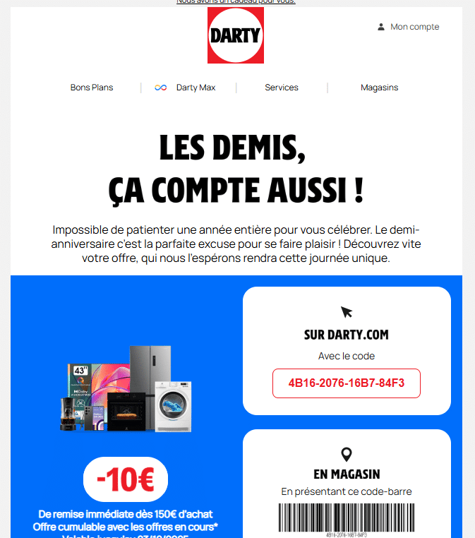 Darty : Joyeux demi-anniversaire.