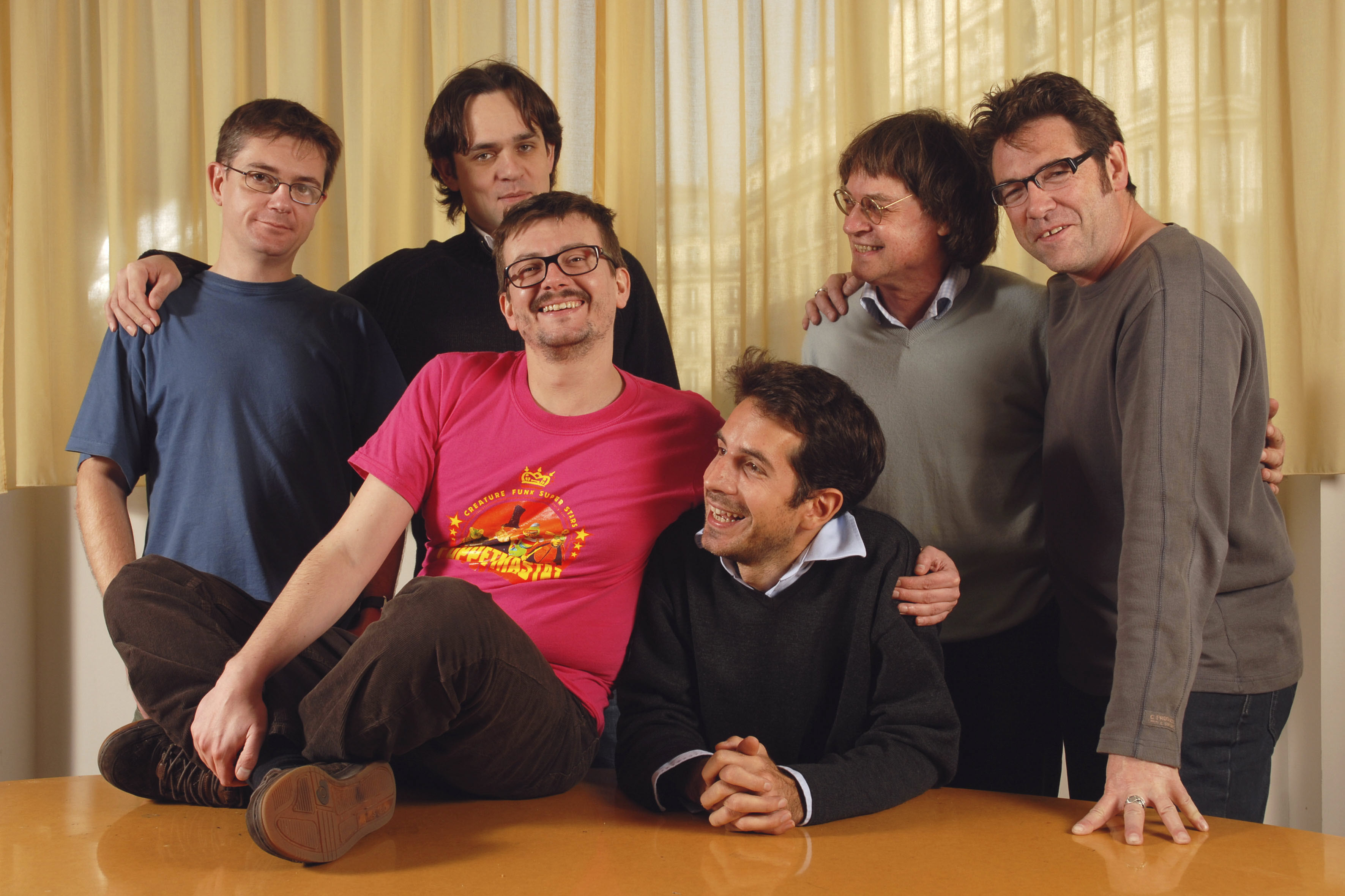 Cabu, Charb, Jul, Luz, Riss et Tignous : la rédaction de Charlie Hebdo, octobre 2006. / Jean-Luc VALLET