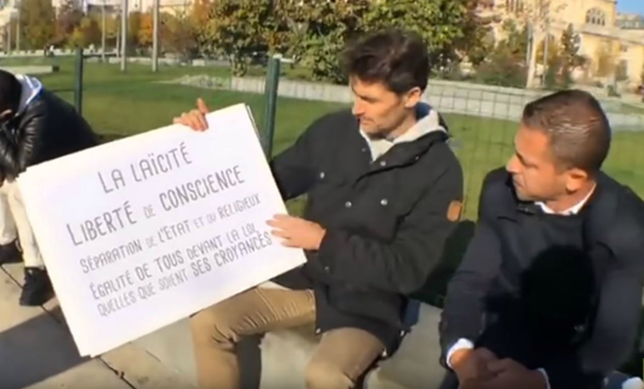 Au début de la vidéo, le « reporter », fidèle à son habitude, interpelle les gens dans la rue. Des questions simples sont posées telles que « c’est quoi la laïcité pour vous ? », « afficher un signe religieux comme le voile, c’est normal ? », « quand on est professeur a-t-on le droit de porter un signe religieux ? » Une séquence a priori « neutre » qui dure une minute et dix secondes (sur un total de plus de six minutes).