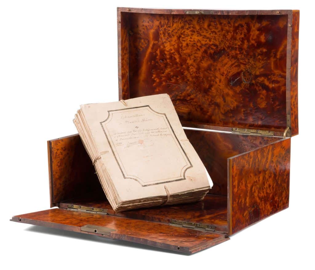 « J’aperçus le ciel et un peu de verdure. Cette première sensation fut un moment délicieux. » Paul Huet admirait Jean-Jacques Rousseau (1712-1778). L’auteur de La Nouvelle Héloïse (1761) et des Rêveries du promeneur solitaire (1782) faisait partie de ses maîtres : « les émus, les passionnés ». Vers la fin de sa vie, entre 1771 et 1772, une trentaine d’années avant la naissance du peintre, Rousseau réalisait un herbier portatif pour son ami Charles-Joseph Panckoucke. Cet herbier – l’un de ses trois herbiers pédagogiques connus à ce jour – disparut en 1976 avant de resurgir lors d’une vente aux enchères, le 17 juin 2024, à Paris. Grâce à des dons privés, la Fondation auxiliaire du Conservatoire botanique de la Ville de Genève a pu acquérir les quatre-vingt-dix-neuf chemises d’herbier du Citoyen de Genève, avec son coffret en orme moucheté, sa cotonnade à rayures et son catalogue de douze pages manuscrites, présentés au public depuis février dernier à la bibliothèque du Jardin botanique. « Jamais la nature ne nous trompe », titre l’exposition, reprenant une phrase d’Émile ou De l’éducation (1762).