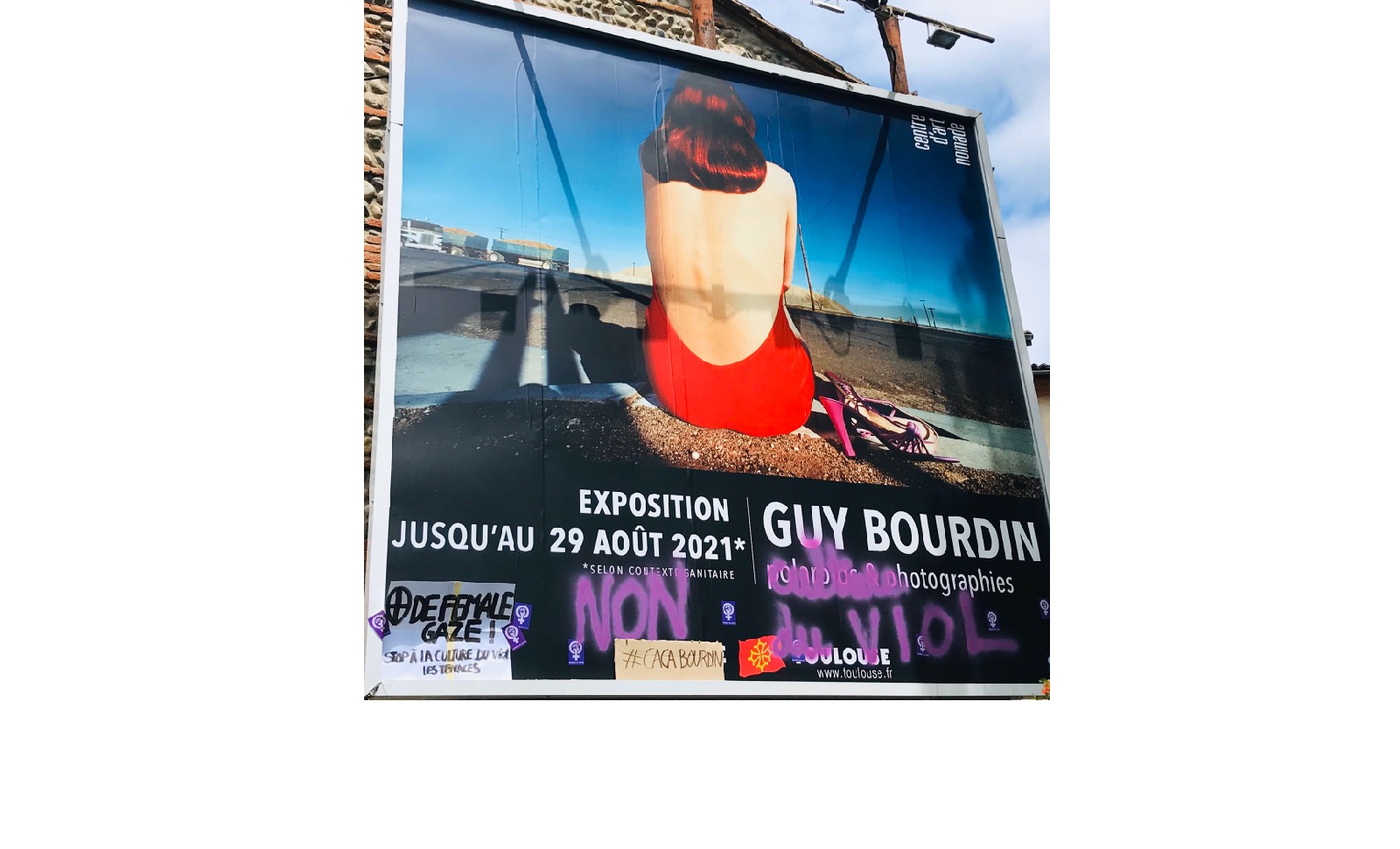 C’est d’ailleurs cette accusation qui a été taguée sur l’affiche de l’exposition. La photo qui l’illustre est pourtant loin d’être salace : on y voit une femme rousse en maillot rouge, assise de dos bien sagement. Mais pas besoin de dévoiler l’Origine du monde pour indigner ces néoféministes à la pudeur de gazelle lorsqu’il s’agit d’œuvres dont l’auteur est un homme blanc hétéro. « Nous sommes en colère, car les photos de cet homme représentent des corps ou des morceaux de corps de femmes, dans des positions lascives et explicites. Elles produisent et diffusent la culture du viol » [1], expliquait non sans hargne une porte-parole du mouvement HF Occitanie Alliées. Celle-ci était entourée d’autres militantes brandissant des pancartes sur lesquelles étaient inscrits des slogans qui versaient soit dans le scato-infantile comme « Bourdin caca », ou, dans un registre militant plus identitaire : « Je suis plus qu’une jambe ».
