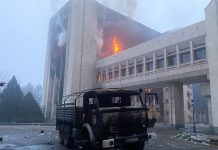 « Dans l’immeuble qui fait face au commissariat, des snipers étaient positionnés au dernier étage, et bloquaient toute tentative de sortie » explique à grand renfort de gestes des bras Kanat Taïmerdenov, le chef de la police d’Almaty (1,7 million d’habitants). Des tireurs expérimentés, eu égard aux nombreux éclats encore visibles sur la façade du commissariat, sur le sol bétonné devant l’entrée, et sur les arbres qui entourent le bâtiment, à quelques pas… d’un jardin d’enfants.