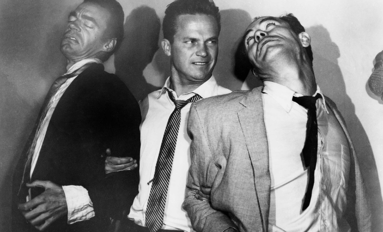 Ce que le film annonce, c’est la fin du monde, l’apocalypse nucléaire. Rassurez-vous: elle ne saurait tarder. Le cinéma a toujours une longueur d’avance sur son temps (si vous en doutez, revoyez « Soleil vert » de Richard Fleischer) et c’est pourquoi il vieillit moins vite que la littérature. Il ne se soucie pas d’être dans le monde de la culture, ni d’atteindre un clacissisme universitaire. « En quatrième vitesse » est le titre français de « Kiss me deadly », titre que Marmin trouve idiot et insignifiant. Il a tort : tous les grands films ont été tournés en quatrième vitesse, à l’image de nos vies quand elles ne s’embourbent pas dans une routine sans saveur. Le jour où nous accordons trop d’importance à nos vies, voire à nos œuvres, signe un déclin irréversible dont même le baiser de la mort ne nous procurera plus le moindre orgasme.
