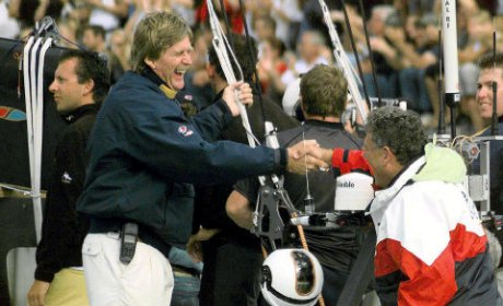 Pour un type comme Russel Coutts, par exemple, l’aspect financier était sans doute très secondaire. Quand on est déjà deux fois champion du monde de match racing [5. En 1992 et 1993. Il remettra ça en 1996], s’il y a bien une coupe qu’on rêve de rajouter à son palmarès pour inscrire définitivement son nom dans la légende, c’est le Auld Mug. Qu’à fait Blake ? Eh bien là où Dennis Conner n’aurait lâché les commandes de son Stars & Stripes pour rien au monde, il s’est attribué un rôle subalterne à bord et a offert à Coutts l’objet de ses rêves : la barre de Black Magic.