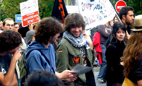 Et puis, il y a cette catégorie approximative, les jeunes. Ils sont là, eux aussi. Ces jeunes, qui jusque là étaient restés à l’écart du mouvement social, sont propulsés au-devant de la scène par les syndicats. Plus question de rester en retrait des retraites car « La retraite, c’est une affaire de jeunes » martèlent les organisations d’étudiants. Ce qui laisse songeur… Les jeunes militent pour la fin de leur vie active alors qu’ils ne l’ont même pas encore entamée, voilà qui est encourageant. La relève est assurée… Penser à l’après-travail et non au travail lui-même. Penser au retrait du monde et non à sa transformation, vouloir le quitter, ventre à terre, avant même de tenter de le conquérir tambour battant, quelle force de caractère pour cette génération que l’on dit « sacrifiée ».