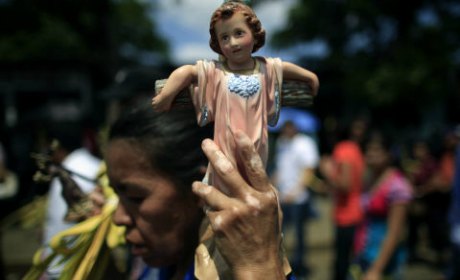 Alors qu’il n’y a qu’un seul Enfant-Roi. Pas l’enfant-roi. Mais l’Enfant-Roi. Le seul Enfant a être demeuré dans la Sainte Enfance jusqu’à sa mort, le seul Roi à régner même du fond de l’ignominie. L’Enfant-Roi des enfants de Dieu appelés à la liberté, non pas la liberté de Rousseau qui ne voyait naïvement l’homme libre que dans une nature à la Douanier Rousseau (sans voir qu’elle pointe déjà vers Dieu) mais une liberté qui dépasse cette nature, puisque notre nature est d’être en Dieu. Avant cela, Dieu est cet enfant au visage doux, qui semble ne pas s’apercevoir du poids énorme de ce petit globe dans sa main, ce monde gros de son péché, ce péché si lourd qu’il nous écraserait de honte et nous renverrait au néant si par amour il ne l’empêchait pas. Mais non, l’Enfant ne plie pas le bras, il soulève ce monde qui ne veut pas le connaître, il le porte, car il en est déjà vainqueur.