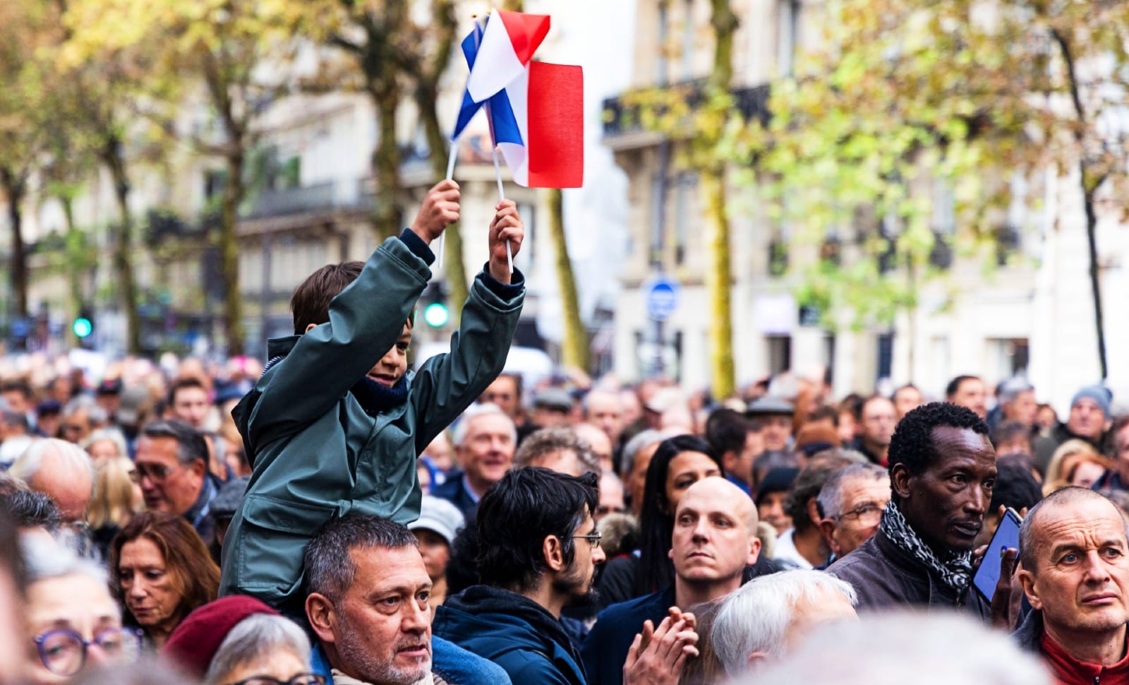 182 000 personnes ont manifesté en France, dont 105 000 dans la capitale. Des troisième âge, des quatrième âge, des avec enfants, d’autres avec bicyclette, des drapeaux français, des Marseillaise chantées en canon, des pancartes bricolées main… Les policiers sont souriants et détendus, ils plaisantent avec les marcheurs. Pas de cris, pas de violence, pas d’hostilité, pas de revendication, pas de service d’ordre, pas de black blocks, pas de vitrine cassée, pas de poing levé. Une rivière humaine des Invalides au Sénat, dont la queue démarrait quand la tête avait atteint l’arrivée, 8 kilomètres entre les deux.