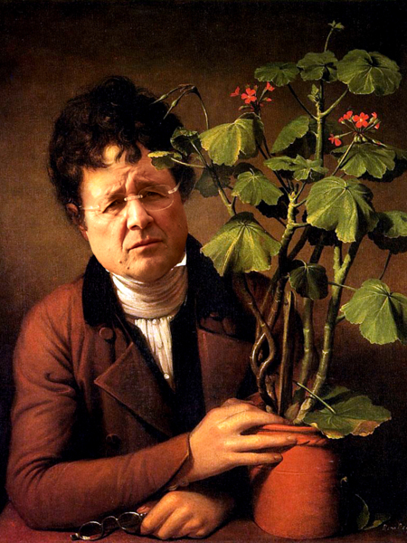 Né à Amsterdam en 1820, Franz van Haaten était tenu pour l’un des botanistes les plus réputés du XIXe siècle. Inventeur de la synthèse abusive, qui consistait à greffer ensemble tout ce qui lui passait sous la main (il se greffa même un cuir chevelu sur la tête), il consacra sa vie entière à créer de nouvelles variétés de roses. Les roseraies européennes doivent ainsi au génie de van Haaten la tulipe des neiges, l’edelweis marin et le chou-rose. L’invention du bonzaï géant lui valut d’être distingué par l’académie des Sciences du Japon en 1854. Le peintre Jan van der Putten représente ici le grand botaniste avec l’un des plus beaux pots aux roses qu’il créa.