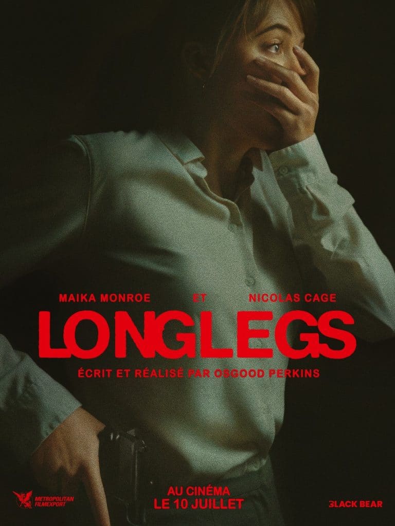 Co-produit par l’inclassable et protéiforme Nick « Fury » Cage qui incarne ici un psycho-killer grimé, siliconé et saupoudré absolument terrifiant (le fameux « Longlegs » du titre, alias « Jambes-longues ») que l’on n’est pas prêts d’oublier, ce thriller indépendant (produit par la petite boîte Neon pour 9 millions de dollars) en forme de jeu de pistes diabolique est l’œuvre d’Oz Perkins, le fils de l’immense Anthony Perkins, inoubliable Norman Bates dans le Psychose d’Hitchcock, le maître du suspense auquel on pense évidemment beaucoup ici, au milieu de quantité d’autres influences. Citons pêle-mêle Le Sixième Sens (Manhunter) de Michael Mann, Le Silence des agneaux de Jonathan Demme, Cure de Kiyoshi Kurosawa, The Cell de Tarsem Singh, The Pledge de Sean Penn, Seven et Zodiac de David Fincher, Prisoners de Denis Villeneuve, Heredity d’Ari Aster, Black Phone de Scott Derrickson, sans oublier une atmosphère globale vénéneuse et cotonneuse très lynchéenne… Et bien d’autres références encore.