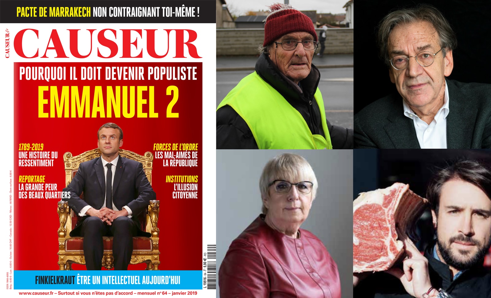 En 2019, Emmanuel Macron pourrait bien enfiler le gilet jaune. Mais ce n’est pas la seule raison de vous plonger dans Causeur: du retour d’Alain Finkielkraut à l’analyse du Pacte de Marrakech, découvrez le menu du nouveau numéro. Bonne année (populiste ?) à tous !
