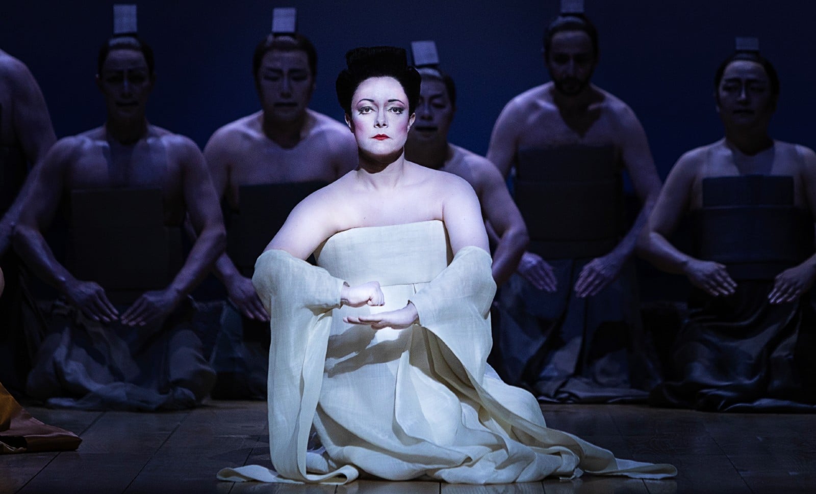 Fort heureusement, la « tragédie japonaise » de Puccini est ici servie par une direction d’orchestre pleine de nuances, sous la baguette de la cheffe transalpine Speranza Scappucci, et par l’excellent ténor Stefan Pop dans le rôle de Pinkerton. Si la mezzo Aude Extrémo campe Suzuki, la fidèle servante de Cio-Cio-San, avec une belle rondeur dans les graves, on découvrait dans le rôle-titre, au soir de la première, la soprano Eleonora Buratto, lestée d’un vibrato un peu large et d’aigus parfois stridents (elle est en alternance avec la Russe Elena Stikhina), tandis que Sharpless, le consul, se voit quant à lui souverainement campé par le baryton Christopher Maltman. Carlo Bosi (Goro), Andres Cascante (Yamadori), Vartan Gabrielian (le bonze) et enfin l’Ukrainienne Sofia Anisimova (Kate Pinkerton) complètent cette distribution d’assez haut vol tout de même.