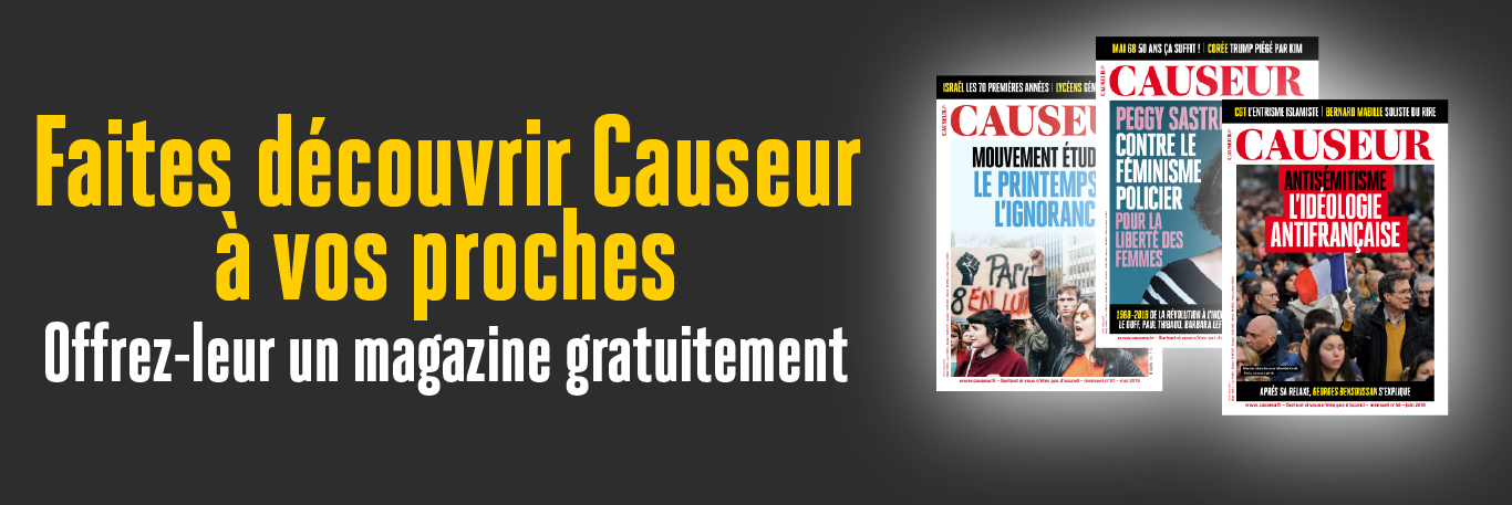 Remplissez ce formulaire et cliquez sur « Envoyer » pour offrir gratuitement un magazine Causeur à l’un de vos proches*