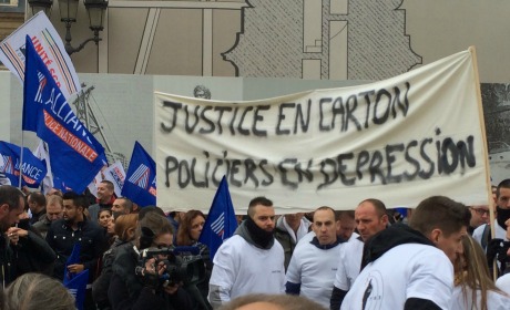 A l’heure ou 22 flics sont agressés physiquement chaque jour en France, le désarroi est palpable, dans les conversations comme dans les slogans repris en chœur : « Justice, n’oublie pas la police ! Justice, protège ta police ! », « Fermeté ! », « Plus de libérations, plus de permissions ! », « Taubira, casse-toi ! »… suivis de huées, de sirènes et d’explosions de pétards.