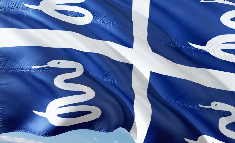 Un drapeau cristallise les passions en Martinique. Le 5 octobre, le syndicaliste policier Claude Coppel a attiré l’attention des caméras sur les armoiries aux quatre serpents fer-de-lance qui flottent sur le fronton du commissariat de police de Fort-de-France.