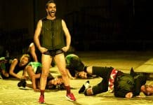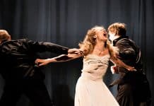 Mais qu’en est-il de la part de Masurca Fogo portée vivante en moi depuis dix ans ? Ma mémoire l’a-t-elle conservée véritablement intacte ? Est-il juste de comparer ma mémoire à un enregistrement ? Assurément pas. Dans mon deuxième article pour Causeur consacré à Pina Bausch, j’avais par exemple décrit de mémoire cette séquence de Masurca Fogo : « Une charmante jeune femme en bikini est vêtue d’une robe de ballons rouges. Elle regarde avec coquetterie un groupe d’hommes torses nus en train de fumer. Les hommes s’approchent soudain avec une lenteur sadique et la dénudent en crevant les ballons un à un avec leurs cigarettes, tandis qu’elle pousse des cris suraigus à chaque explosion. » Dans le Masurca Fogo « réel » auquel j’ai assisté mardi soir, pourtant, les hommes ne sont pas en train de fumer et la femme en bikini ne leur lance pas le moindre regard coquet. Les hommes se tiennent autour de la femme, qui raconte avec enthousiasme, en anglais, un souvenir d’enfance. Elle livre une bribe de son récit à chacun, tout en allumant négligemment la cigarette à la bouche de chaque homme. Elle évoque une maîtresse d’école tyrannique et hideuse qui demandait chaque jour à ses élèves : « Et aujourd’hui, est-ce que je suis belle ? », les contraignant à louer sa beauté et à baiser ses mains grasses. À la seconde suivant la conclusion comique de son récit – lui-même administré de manière tyrannique et narcissique – les hommes crèvent soudain les ballons, tous simultanément, sans la moindre « lenteur sadique ».