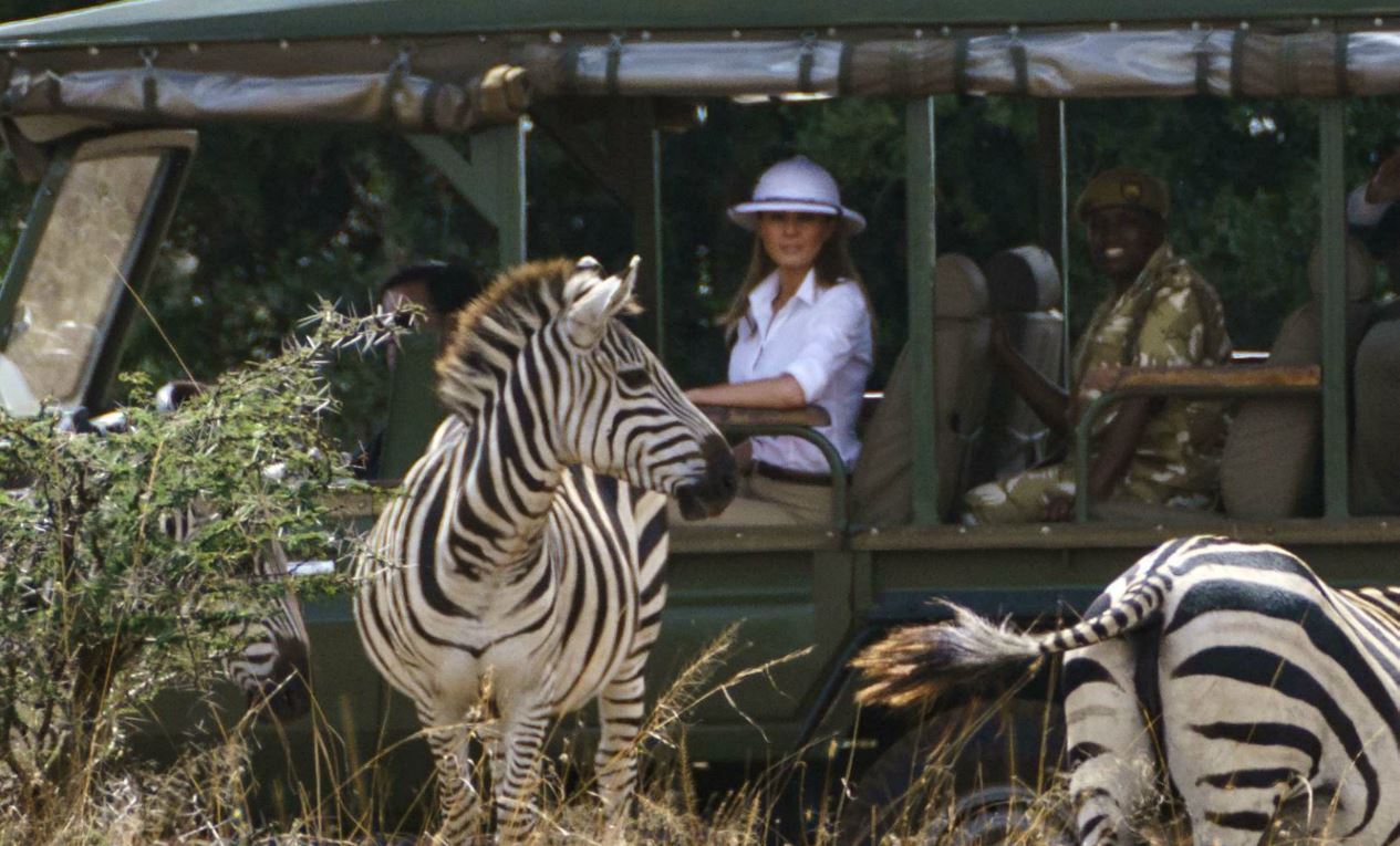 En visite officielle au Kenya, Melania Trump, première dame des Etats-Unis et épouse de l’abominable Donald, l’homme qui menace la paix internationale, réchauffe le climat et mange les petits enfants mexicains, arborait un casque colonial blanc.