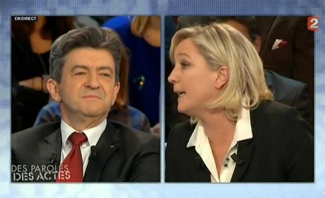 Non seulement j’ai regardé en direct le refus de débat maquillé en débat, sur France 2, entre Jean-Luc Mélenchon et Marine le Pen. Mais, ce matin, en plus, j’ai amélioré mon petit dej’ avec le best of proposé par tous les sites internet de journaux. Drôle de chose télévisuelle quand même.Entre les insultes et les saillies drôles du candidat du Front de gauche, et la moue boudeuse et le regard fuyant de l’autre plongée dans Nord-Matin, je me suis franchement demandé à quoi j’assistais.