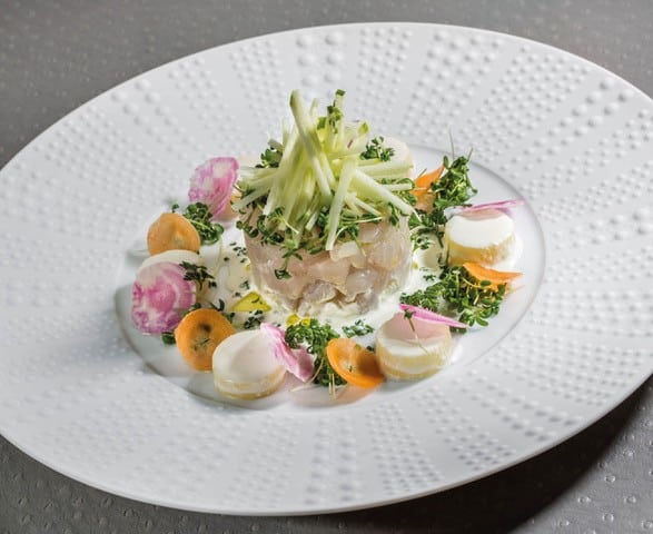 Tartare de daurade, mariné façon maatjes, fleurette au raifort