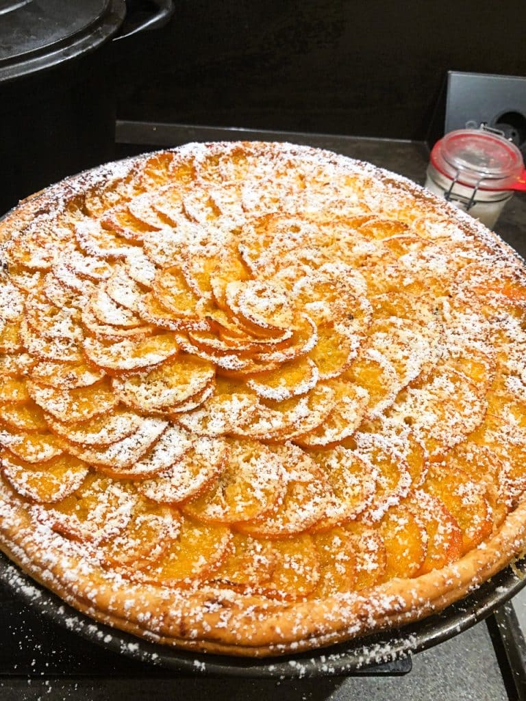 • À la sortie du four pulvériser la tarte avec un peu de sucre glace pour la faire briller