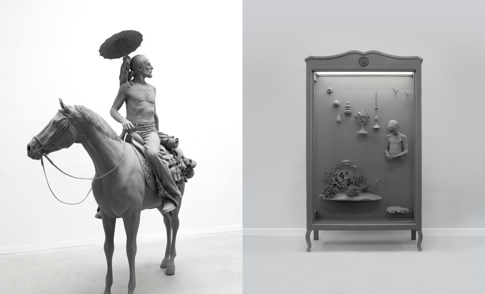 Ce qui frappe, dans l’œuvre de Hans Op de Beeck, artiste belge né en 1969, ce sont surtout ses sculptures grises parfaitement réalistes. Cependant, contrairement aux hyperréalistes, on ne trouve pas chez lui de recherche de virtuosité dans le mimétisme, mais seulement un sobre souci de fidélité. L’artiste a largement recours aux outils récents de numération et d’impression 3D, complétés par des opérations manuelles où s’exprime sa patte. En dépit de leur apparente modernité, ces techniques ne sont nullement étrangères à la tradition de la sculpture, qui s’est toujours beaucoup appuyée sur le moulage. Ainsi l’atelier de Rodin, conservé à Meudon, permet-il de découvrir une véritable bibliothèque de fragments de corps moulés.