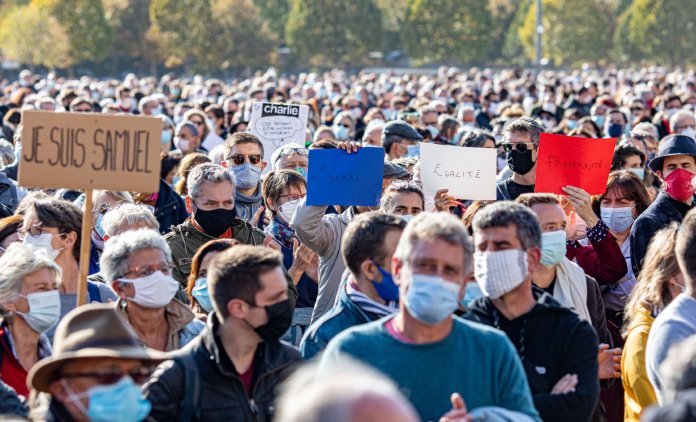 Vendredi 16 octobre, Samuel Paty, professeur, a été décapité parce qu’il enseignait. Réduire cet assassinat à un crime revient à esquiver le caractère politique de la visée hégémonique qu’il véhicule. Car cette atrocité se présente comme une exécution menée au nom d’un ordre supérieur qui devrait supplanter non seulement les lois de l’association politique, mais aussi tout rapport autonome à la connaissance, à la pensée. Elle révèle aussi que la guerre menée contre la République a dépassé la période des tests politiques, puis celle des commandos organisés terrorisant la société civile, pour atteindre un niveau alarmant de diffusion. En étendant les poches d’aisance où il se meut « comme un poisson dans l’eau », le terrorisme islamiste contamine le corps social et menace de le submerger.