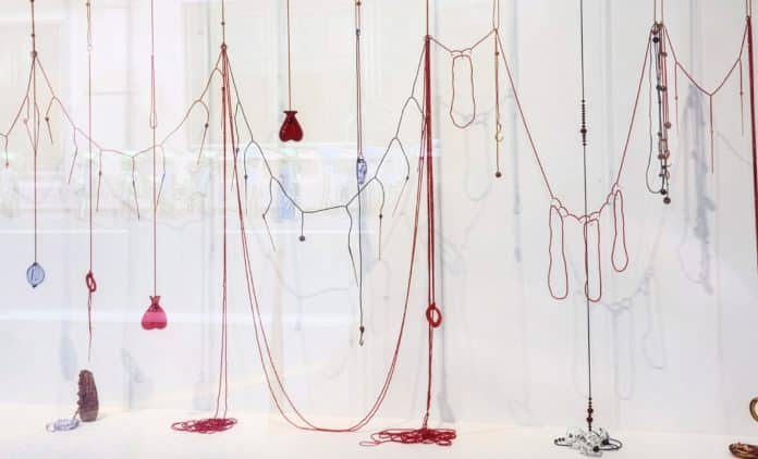 Alex Da Corte est ce que l’on appelle un artiste « conceptuel ». Ce qu’il crée ne se veut ni beau, ni laid, mais intéressant. Ses œuvres ne sont pas là pour plaire ou déplaire, mais pour faire réfléchir et produire du sens. Au motif de l’artiste inspiré s’est en effet substitué celui des œuvres inspirantes, qui convoquent, provoquent, interrogent, explorent, examinent, investissent, renvoient, réinterprètent, réutilisent, revisitent, réinventent, traduisent, mettent en perspective, confrontent, rapprochent, conjuguent, font dialoguer et émancipent. Kermit The Frog, le célèbre personnage Muppet des années 1950, « convoque ainsi l’enfance et la désillusion pour mieux interroger le rôle des icônes culturelles dans nos sociétés désenchantées », résume la presse spécialisée. Non loin de là, à la nouvelle Fondation Cartier, place du Palais-Royal, les visiteurs s’empressent de lire les cartels pour pouvoir regarder ce qu’ils voient : troncs d’arbre, cordages, monochromes, matériaux recyclés, installations. Le long d’un panneau blanc pendent des fils de couleur, emmêlés par endroits, auxquels sont fixés de petits objets rouges ou bleus en verre soufflé, ainsi que des perles et des aiguilles. Cette œuvre de Jean-Michel Othoniel s’intitule Paysage amoureux (1997). Le cartel explique : « L’œuvre investit des objets symboliques de la passion amoureuse et célèbre un rapport érotique au corps visant un réenchantement des relations humaines. » Sans son commentaire, cette œuvre n’existerait sans doute pas. Sa présence au monde dépend des représentations intellectuelles nées du discours qui l’accompagne. Elle a besoin d’être lisible pour pouvoir être visible et son titre est le début d’une indispensable exégèse.