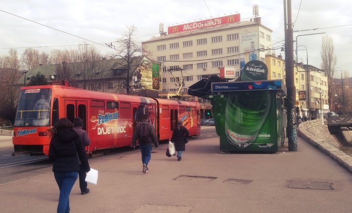 Les écolos ne l’ignorent pas, Sarajevo est située dans une cuvette. À partir du 5 avril 1992, elle fut assiégée pendant quarante-quatre mois. Dans Sarajevo, portrait d’une ville du dedans, paru en 1994 [tooltips content= »Éditions Connectum, 2017. Première édition : Durieux, Zagreb, 1993″](2)[/tooltips], l’écrivain local Dzevad Karahasan y perçoit un caractère médiéval : « depuis le début du siège, l’armée populaire yougoslave a coupé l’eau et le courant ; elle ne laisse entrer ni vivres, ni médicaments, ni combustibles, ni produits de base indispensables pour le maintien d’une certaine hygiène. Cette méthode a été pour la première fois utilisée […] dans la guerre qui opposa le roi de France et le comte Simon de Montfort aux Cathares », assure-t-il. Le long de la portion de voie rapide M18, des immeubles pour petites gens portent toujours des marques de balles. Encore maintenant, la voie rapide est surnommée Snajperska Aleja (Allée des Snipers).
