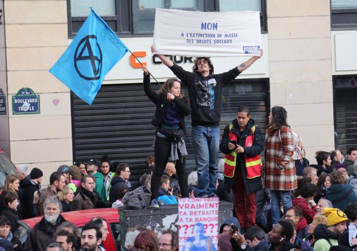 On se souvient de l’occupation illégale de la place de la République, organisée par le mouvement Nuit debout, à l’occasion des débats relatifs à la loi Travail. Trois ans plus tard, le même groupe a contribué aux festivités parisiennes par le blocage de la place du Châtelet, après avoir squatté le centre commercial Italie 2, « symbole du capitalisme » triomphant – le tout pour dénoncer l’« inaction climatique ».