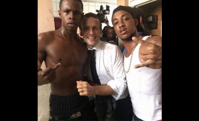 Ah, la photo de Macron entouré de Réaulf et Dimitri sur l’île de Saint-Martin, lors de son déplacement aux Antilles ! Le président était en visite un an après le passage de l’ouragan Irma et l’exécutif souffrait déjà des violentes critiques de la population. Alors la photo, ça tombait franchement mal. Catastrophique en termes d’image. Le cliché honteux montrait le président à côté d’hommes peu recommandables dont l’un faisait de surcroît un doigt d’honneur face à l’objectif. En sueur, les deux jeunes gens entouraient le président français. La presse apprendrait plus tard que celui qui avait gardé son débardeur était un ancien braqueur qui sortait tout juste de prison.