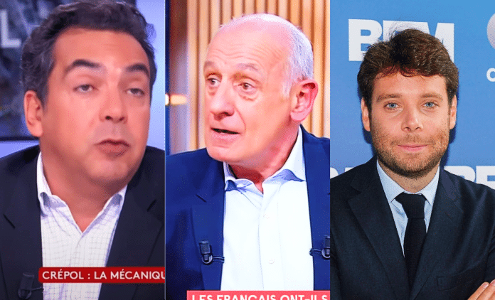 Les éditorialistes Patrick Cohen, Jean-Michel Aphatie et Benjamin Duhamel. DR.