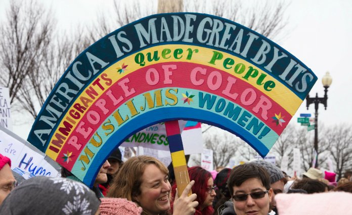 Juste après l’élection de Donald Trump à la présidence des Etats-Unis, s’étaient formés, non seulement dans les grandes villes américaines, mais aussi européennes, de petits comités de résistance à l’avènement du Mal, notamment à Berlin. Les revendications, consistant pour la plupart en la reprise des grands standards : « Non à Trump, non au racisme, non au sexisme, non à l’homophobie, non à la xénophobie », s’accordaient toutes au-delà de leur, relative, diversité, sur la nécessité d’en faire appel à la tolérance. Jusque-là difficile d’en vouloir à tous ces braves gens ; sauf à regarder les conclusions auxquelles ils en arrivent : « solidarité avec toutes les personnes queer, transgenres, de couleur, avec les musulmans, les Mexicains, les femmes, les réfugiés et tous les opprimés de la planète. »