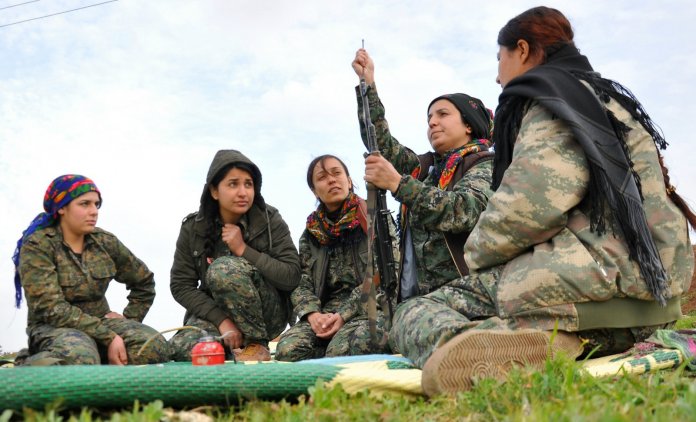 Des combattantes kurdes des Unités de protection du peuple (YPJ), dans la province de Hassaké (nord-est de la Syrie), février 2015.