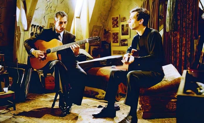 C’est un tragédien solennel. Il en a d’ailleurs le visage. Sa gueule magnifique semble coupée au couteau ou taillée dans le marbre. Les vers des rois de Racine pourraient sortir de sa bouche. Mais il est né chez les manouches, dans une caravane, et ce sont les notes de la guitare qui éclatent – divinement ! – sous ses doigts de sorcier et forment les poèmes des gens du voyage. Et quel swing ! Ça « transmet » comme on dit dans le monde de la tauromachie. Les quelques jeunes entassés au fond du club ne peuvent s’empêcher de danser. Angelo Debarre, lui, officie tranquille, serein. Pour lui, ça roule. Je l’attends à la fin du concert. Il salue le public, dédicace quelques albums, et sort s’en griller une. Je me présente, le félicite, lui témoigne mon admiration, et lui propose une interview dans Causeur. « Si tu veux. Mais c’est pas moi qui viendrai à Paris ! Si tu veux qu’on fasse ça, tu viens chez moi, à Samois. » Samois-sur-Seine. La ville où Django s’était sédentarisé. Celle aussi où il fut enterré en 1953.