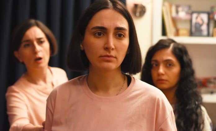 Si Iman se trouve du côté du manche, il bosse pourtant dans une capitale en ébullition : suite à la mort en garde à vue de Mahsa Amini, simplement arrêtée, on s’en souvient, pour s’être opposée au port obligatoire du voile, la jeunesse se soulève contre la dictature théocratique, à l’enseigne du slogan « Femme, vie, liberté ». Filmée par les smartphones, la répression aveugle qui s’abat sur les passants contraste avec l’image qu’en donne la télévision d’Etat, dans le poste perpétuellement allumé devant la table de salle à manger. Najmeh, femme d’ordre et bonne épouse musulmane, tâche de maintenir tant bien que mal la concorde au sein de la famille, clairement divisée par les événements : les filles ne sont pas dupes ; les réseaux sociaux diffusent sur leurs smartphones ces images des exactions que les parents refusent de voir.