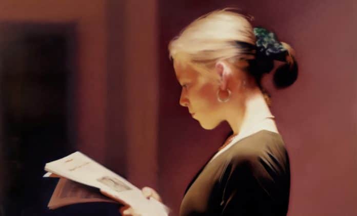 Marines nuageuses, montagnes et champs brumeux, pommiers bordant une route sinueuse, natures mortes épurées, jeune femme lisant, émouvantes maternités, portraits et autoportraits : le style Richter, c’est l’art de jouer avec la vérité photographique en lui ajoutant l’artifice mimétique de la peinture. Les œuvres nées de l’objectif de l’appareil photo et du geste du peintre – photo dépeinte et peinture floutée – ont une existence réelle mais pétrie d’imprécision. Betty (1988) vient de tourner la tête : on ne voit soudain plus son visage. Son sweat d’un blanc éblouissant à fleurs roses et ses cheveux blonds frappés par la lumière d’un soleil absent tranchent avec ce fond sombre digne d’une toile de Sánchez Cotán. Présente au point de donner l’impression de sortir du cadre, la jeune fille se heurte au mur de sa propre représentation. Hyper-réelle et vaporeuse, elle nous apparaît plus vraie que nature mais, au bout du compte, insaisissable : elle se dérobe à notre regard et tourne le sien vers le puits sans fond d’une obscurité sans formes. Elle fait exister et l’image et l’œuvre, nous obligeant à cligner des yeux pour tenter une impossible mise au point.